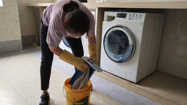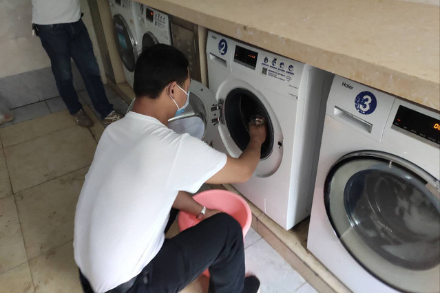 5月15日,学生公寓东西区功能房洗衣机内筒消毒。内筒相较于外部设施更容易藏匿细菌,所以大家对这一部分工作更加细致和认真。