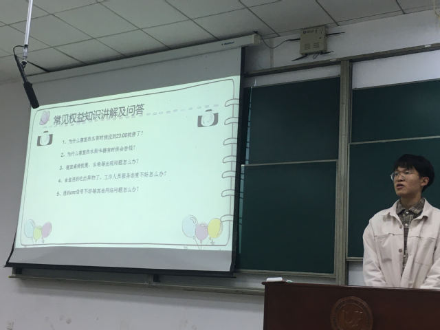 本网讯(通讯员 刘丹)2020年11月26日下午一点三十分,教学楼3号楼103教室开展了权益知识讲座。