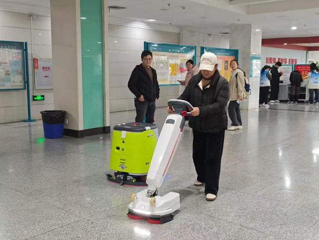 通过测试发现,两款设备各有优势:室内清洁机器人能够自主完成路径规划与清洁作业,可实现大面积公共区域的无人化清洁;手持洗地机则支持灵活调控,能够精准应对楼梯边缘等复杂区域的精细化清洁。