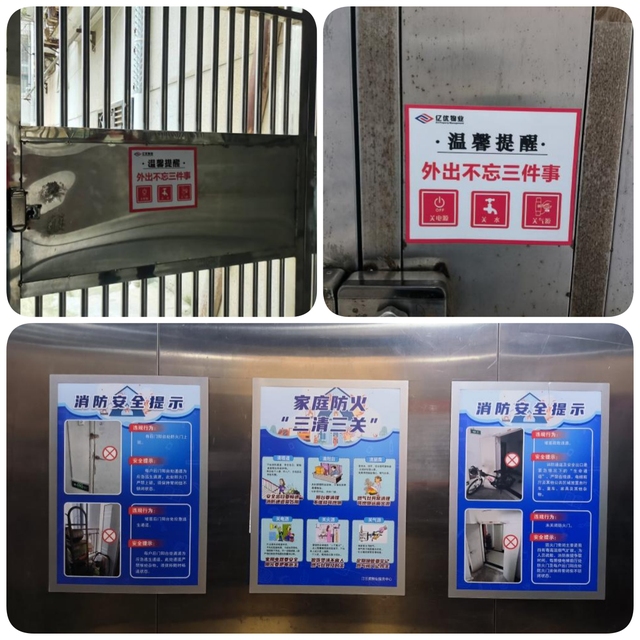 本次宣传内容涵盖三大板块:一是家庭防火“三清三关”,详细解读清楼道、清阳台、清厨房,关电源、关火源、关气源的具体要求,引导住户主动清理家中可燃物,规范用火用电用气行为;二是消防通道专项提示,明确标注堵塞消防通道、公共区域堆放杂物、锁闭防火门等违规行为的危害;三是外出安全温馨提醒,提醒住户离家前务必关闭电源、水源、气源,从源头消除居家安全隐患。此次宣传采用图文并茂、通俗易懂的形式,将专业安全知识转化为住户日常可操作的行为准则。在单元门及电梯内醒目位置张贴,让住户进出楼栋、乘坐电梯时就能随时学习安防知识、强化安全意识。