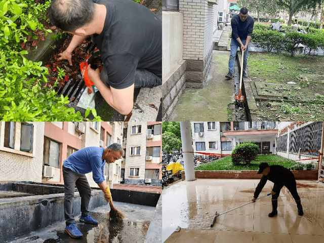 降雨过后,公寓服务部迅速开展雨后环境整治及清淤疏通工作,对各楼栋排水沟渠逐一排查清理,及时清扫公共区域积水与杂物,快速恢复安全整洁、秩序井然的住宿环境。