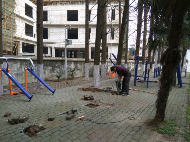 本通讯(通讯员黄婉)2017年2月15日上午,洪山家属区老干活动室旁的健身器材全部进行了拆除和换新。